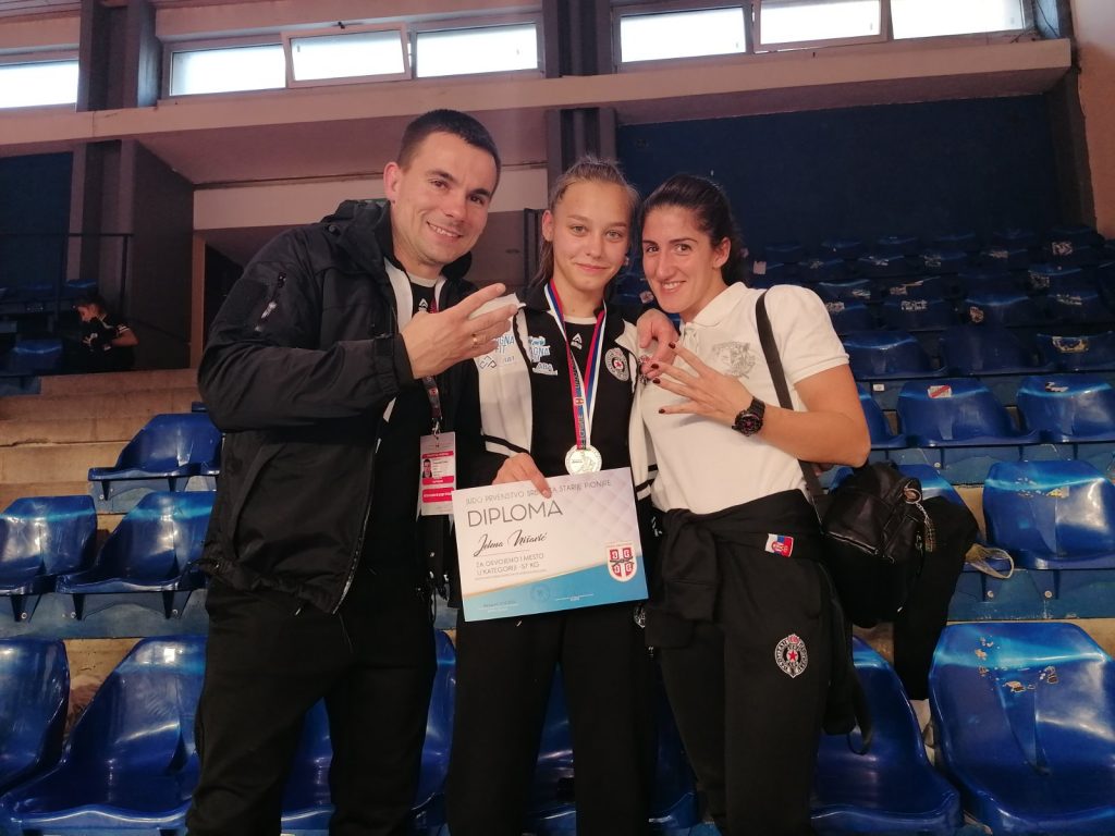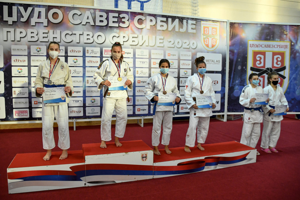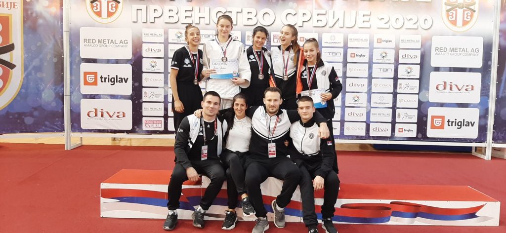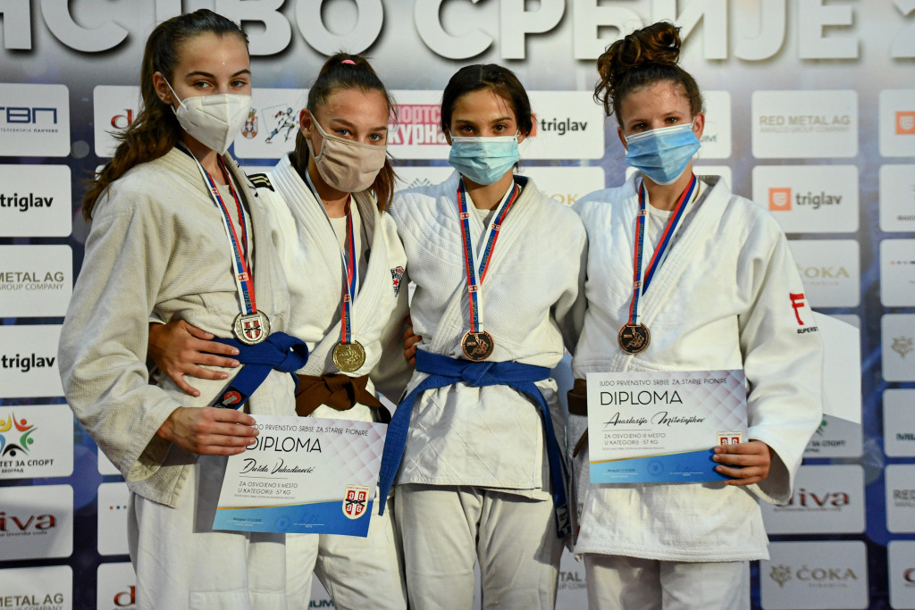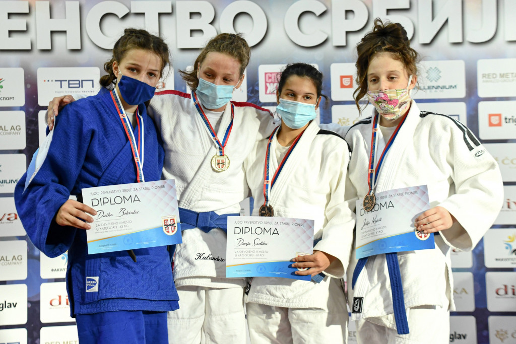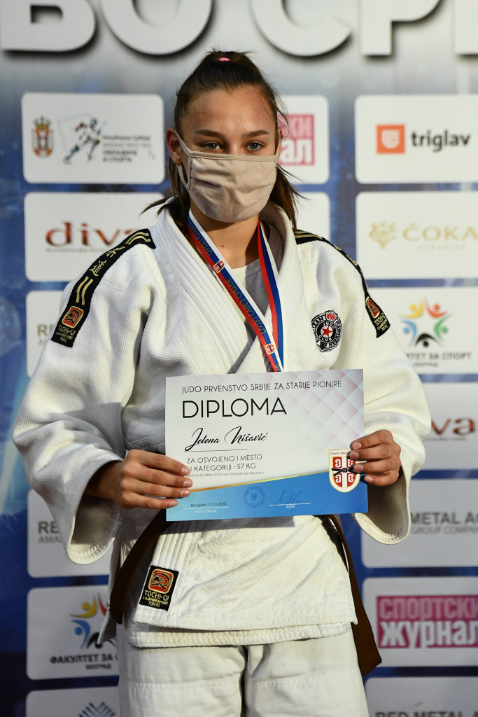Протеклог викенда одржано је првенство Србије за старије пионире где је наш клуб још једном потврдио врхунску џудо школу у ланцу за све узрасне категорије. Квалитетан и систематичан рад донео нам је још шест државних одличја од којих су два златна. На крову Србије по четврти пут за редом нашла се Јелена Нишавић, потврдивши апсолутну власт на струњачи. Јелена је један од најталентованијих такмичара нашег клуба и надамо се да ће нас ускоро достојно представљати и широм Европе и Света. Јелени се овог викенда придружила Теодора Бановачки, која је у својој конкуренцији извршила сечу кнезова! Теодора је такође сјајним наступом освојила злато и донела велику радост свима у клубу. Трећа места су припала Дуњи Вукићевић, Дуњи Радукић, Дуњи Садику и Наташи Митровић. Свакако велики успех и за наше девојке које су се окитиле бронзама, показале су да су у самом врху и већ следећи пут би медаље могле бити друкчије распоређене, а ми ћемо до тада вредно радити. Све у свему, велики резултат за наше такмичаре али и за наш клуб на државном првенству.
